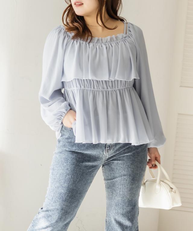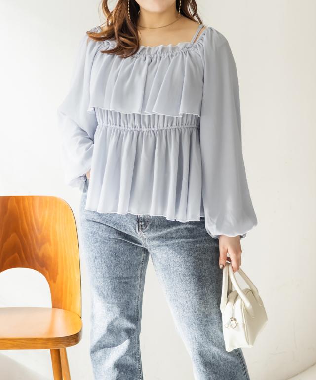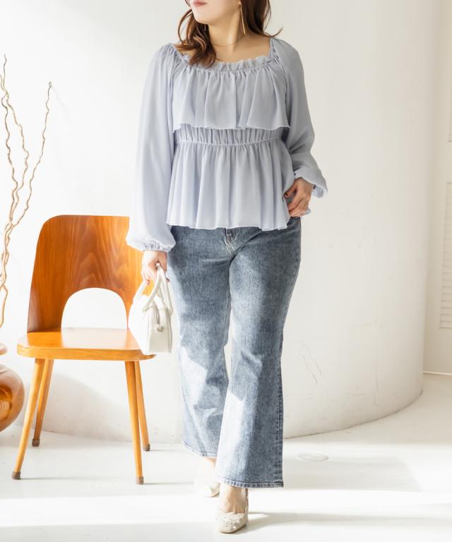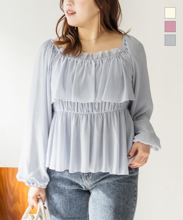 大きいサイズ/レディース/LL/3L/4L/CLETTEオリジナル2WAYネックフリルブラウス
