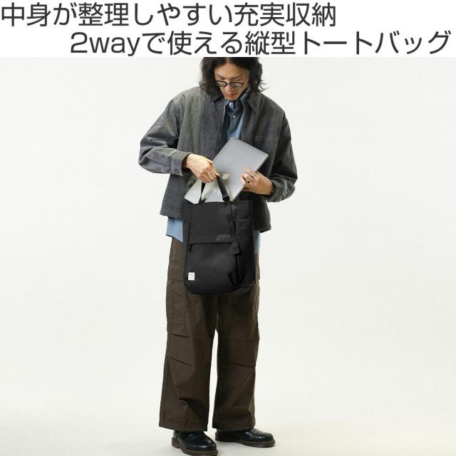 手持ち・肩掛けの2wayで使えるタテ型トートバッグです。長さ調節が可能な持ち手で、いつでもシーンに合ったスタイルに変えられます。書類やファイルなどが収納しやすいタテ型で、機能的なポケットが沢山付いているので、通勤・通学に最適です。