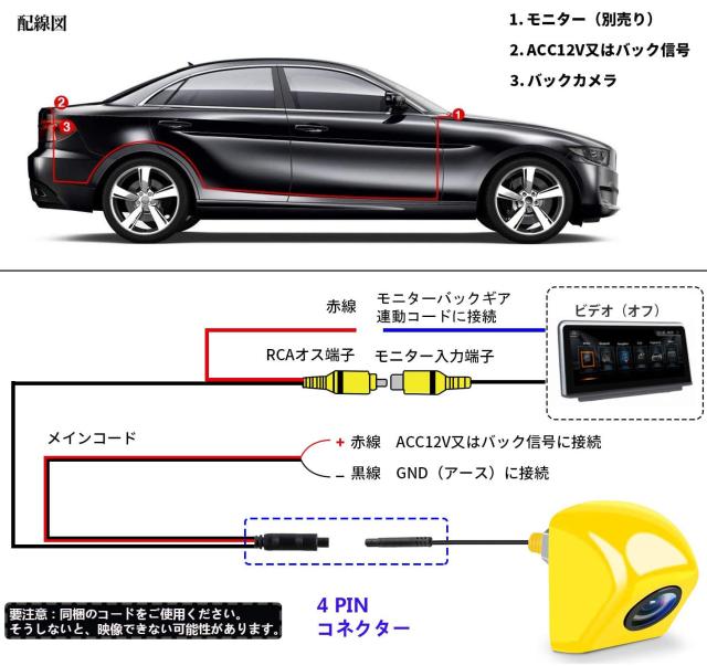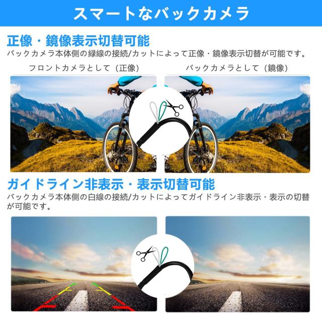 ◇【バック連動機能】 リアカメラのケーブルに1本の連動線が付いています。赤線をバックランプの+側に、黒線を−側に接続したら、バックする時、ガイドラインが表示されるので、車庫入れをサポートできます。バック連動機能を使わない場合は、この連動線を接続する必要はないです。