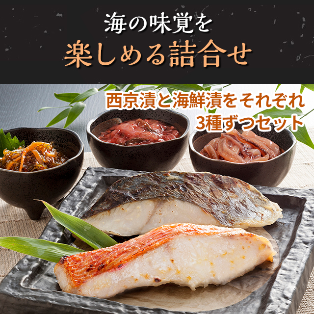 - 京都「祇園又吉」監修の西京漬と海鮮漬の話め合わせです。