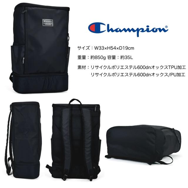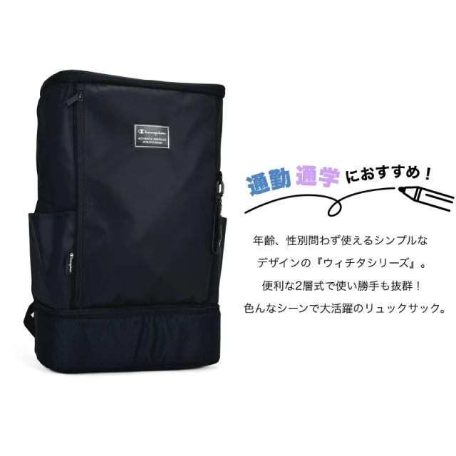 【商品レビューで+5%】チャンピオン リュック メンズ レディース リュックサック Champion ウィチタ スクエア ボックス型 大容量 2ルーム 2層式 デイパック バックパック 35L 男女兼用 ジュニア 学生 大学生 高校生 中学生 A4 B4 PC パソコン 通勤 通学 旅行 部活 軽量 65455