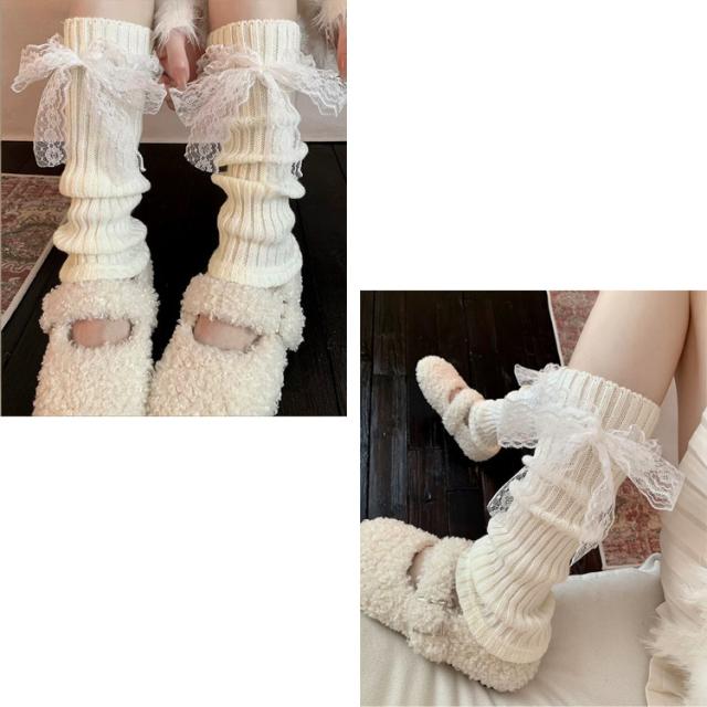 全品送料無料一部除く レースリボン付き リブニット レッグウォーマー ma 【即納】レッグカバー レッグウェア 防寒 防寒対策 暖かい あったか 脚長効果 アームカバー ハンドウォーマー 腕カバー レディース 韓国 Y2Kファッション 韓国ストリート 流行り トレンド かわい