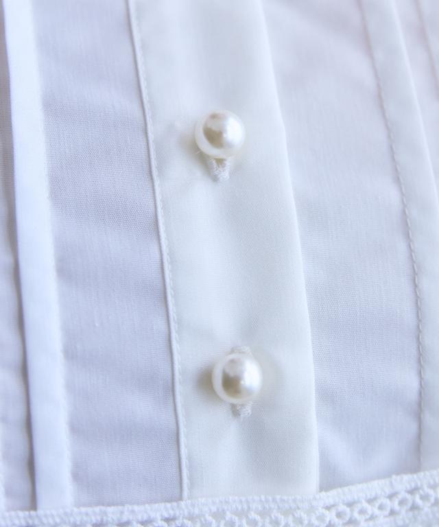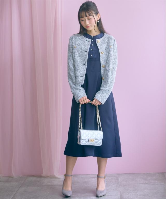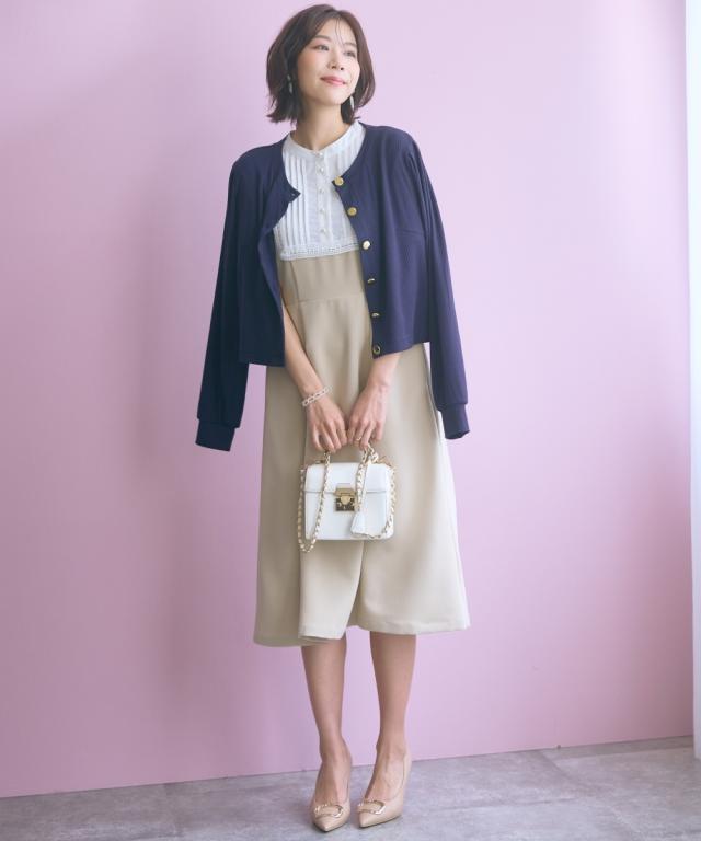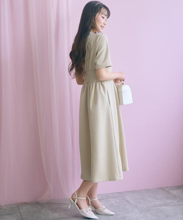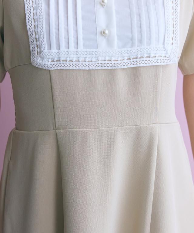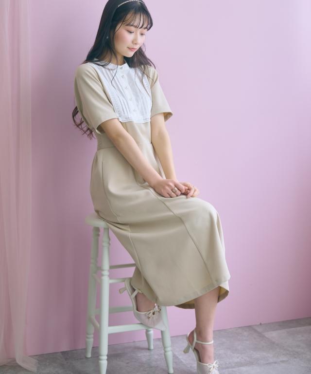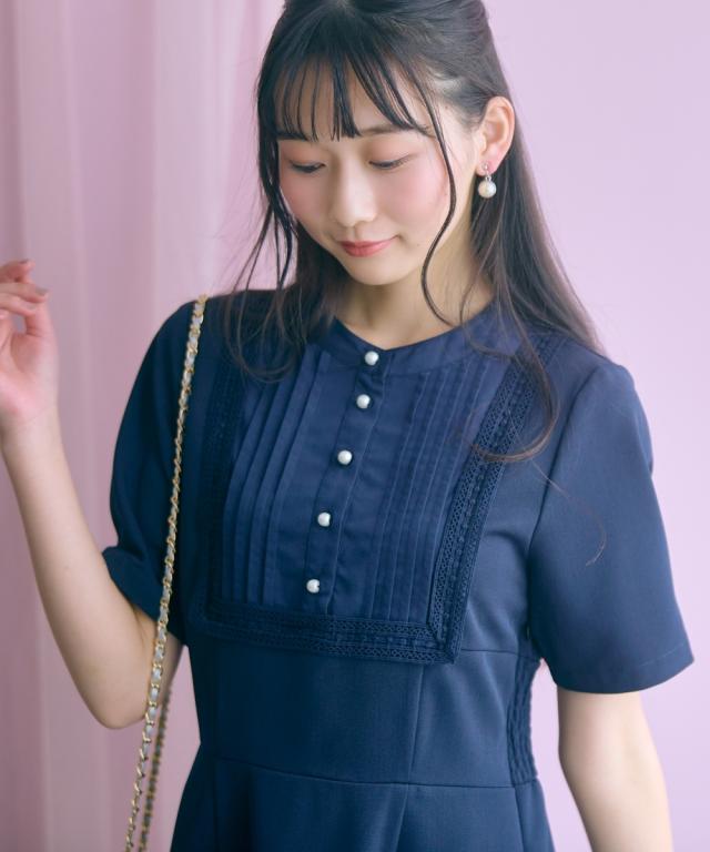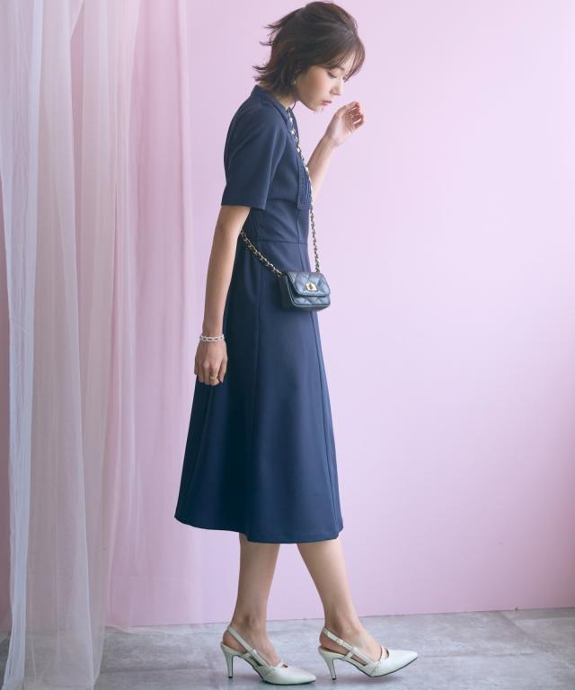 胸元のレース使いが顔周りを華やかに見せてくれる清楚でクラシカルな雰囲気のワンピースです。 ■デザイン 胸元のシャツ切替部にさりげないレース使いが視線を上に集めますウエストが程よくシェイプされ、Aラインシルエットが女性らしさを強調します。 ■素材 シワになりにくく綺麗なフレアシルエットをキープしてくれます。 ■おすすめのスタイリング 膝下までのミディ丈は、お呼ばれやデート、オフィスなど幅広いシーンで好印象を与えます。ジャケットを羽織ることで、ワンピースのクラシカルな雰囲気がさらに引き立ちクラス感がアップ。よりフォーマルなシーンやオフィススタイルとしても素敵です。