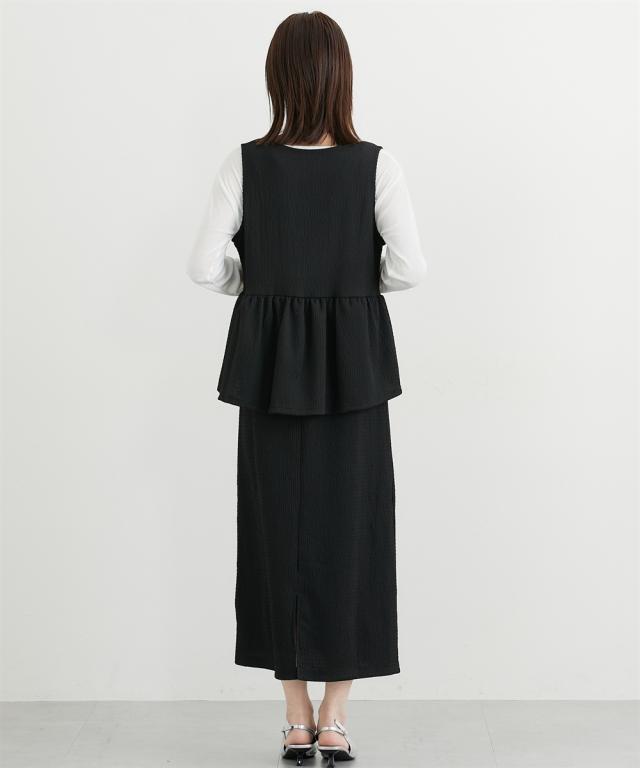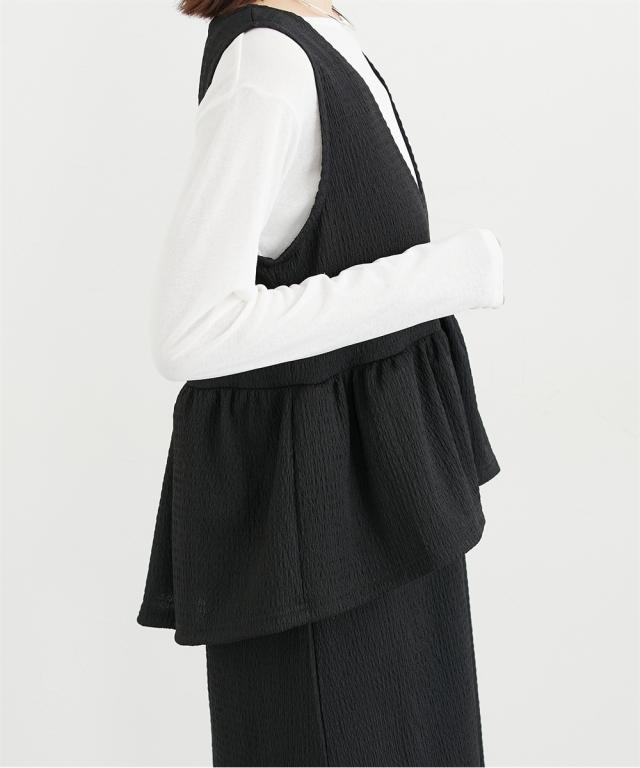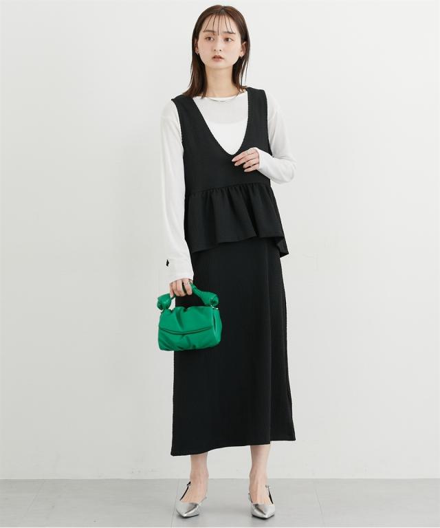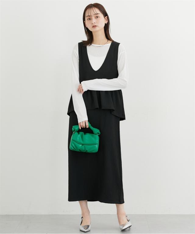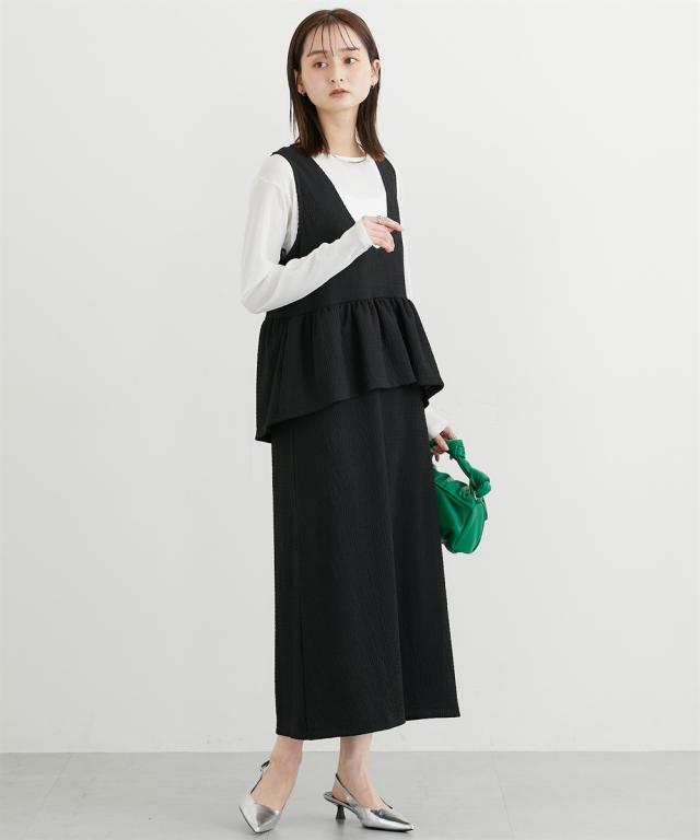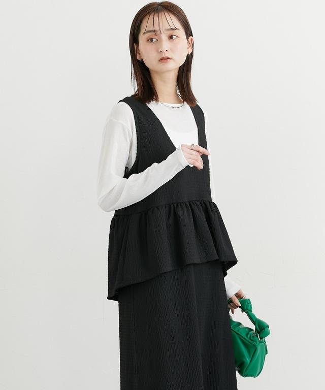 ■デザイン ペプラムトップスとスカートのセットアップ見えするワンピースが入荷しました。トップスのペプラムデザインが人気のアイテムです。インナー次第で春から秋まで着まわせる便利なアイテム。 ■素材 シャーリングジャガードカットソーで仕立てたワンピースなので伸びやかで柔らかくストレスフリーな着心地! ■おすすめのスタイリング インナーにシアートップスやきれいめブラウスを合わせるコーデがおすすめです。インナーと靴とのコーデでオンからオフまで着まわせるおすすめワンピースです!