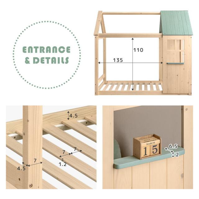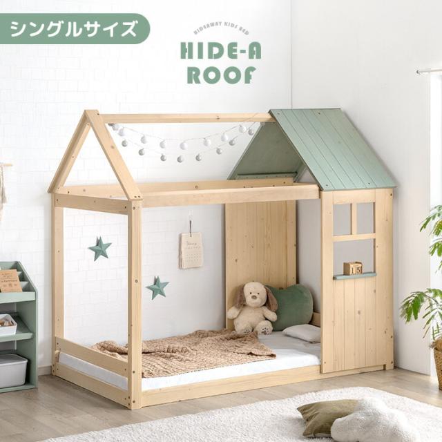 【正午〜P5%還元】 【新発売プライス!3/31迄】 “ひみつ基地”になる 屋根付き ベッド シングル 木製 キッズベッド 子供ベッド システムベッド シングルベッド シングルベット すのこベッド ロータイプ 子供 すのこ 家形 屋根 ハウスベッド 【超大型】【後払/時間指定NG】