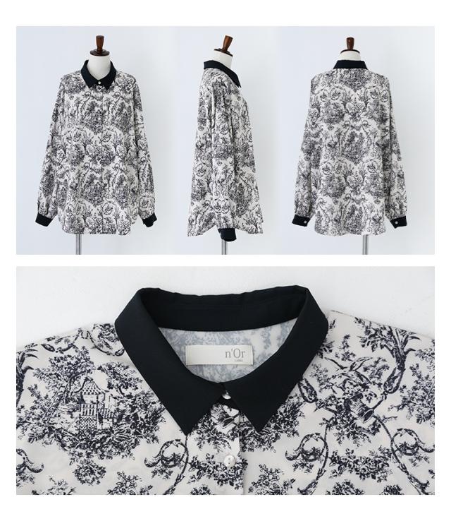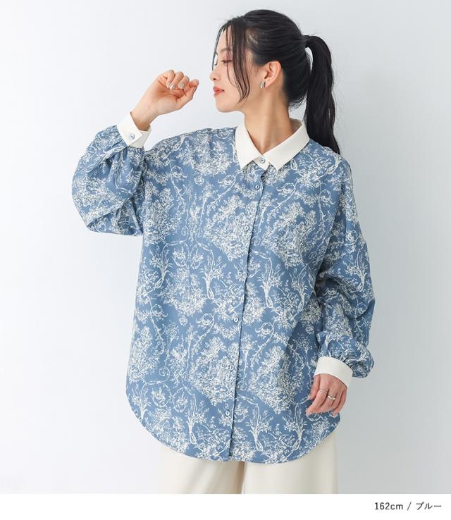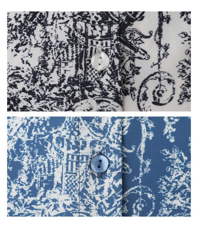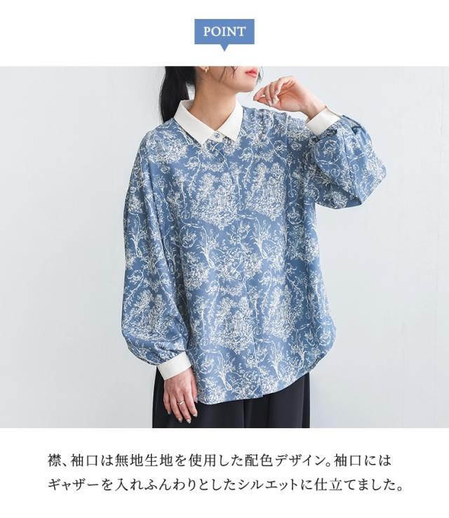 シャツ 長袖 レディース トップス ブラウス トワルドジュイ柄 総柄 無地 ギャザー 落ち感 お尻が隠れる レイヤード 重ね着 春 秋 【TP】 ボタンシャツ 前開きシャツ 襟付きシャツ 柄シャツ 羽織 襟付き 抜き襟 n'OrLABEL ノアールレーベル 大人女子 大人可愛い お洒落可愛い 大人カジュアル ベーシック ニュアンス ラフ エフォートレス オフィスカジュアル 上品 きれいめ ナチュラル ホワイト 白 アイボリー ショート丈 ミディ丈 ミドル丈 配色 おうちで洗える ロングシーズン シワになりにくい カジュアル シンプル モード キレカジ フェミニン ゆったり ゆる 楽ちん Sサイズ Mサイズ Lサイズ LLサイズ 3Lサイズ XLサイズ フリーサイズ ぽっちゃり 体型カバー 大きいサイズ プラスサイズ 10代 20代 30代 40代 50代 60代 低身長 高身長 女子会 オフィス 通勤 通学 お買い物 お出掛け 旅行 リゾート レジャー おしゃれ お洒落 トレンド 流行 osharewalker オシャレウォーカー おしゃれうぉーかー ブルー 青 バイカラー[ID]11tp023[n'OrLABELトワルドジュイ柄シャツ]