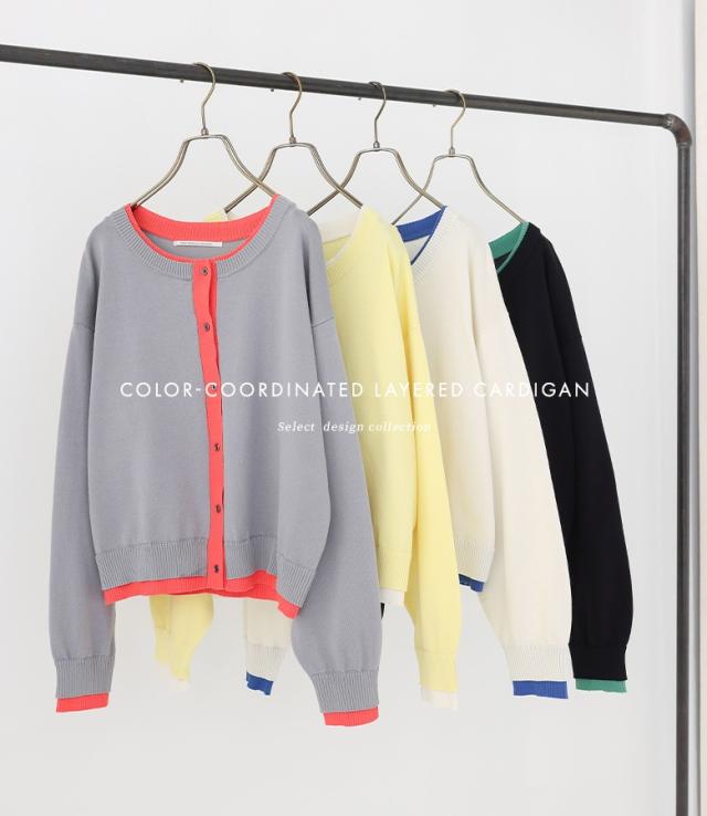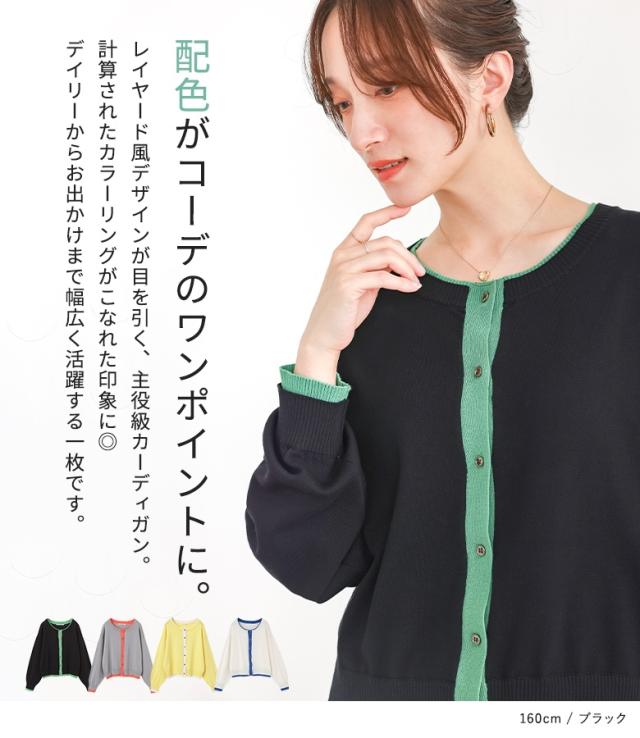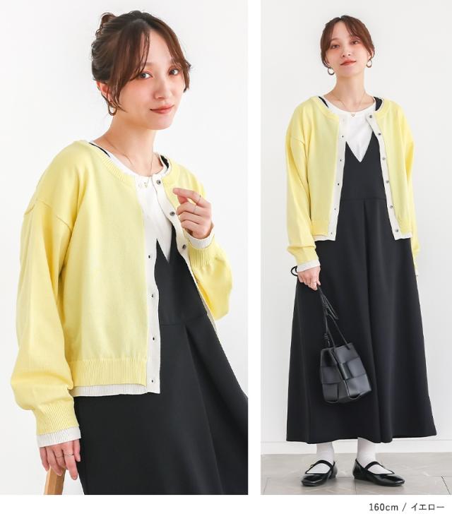 カーディガン レディース トップス ニット 長袖カーディガン クルーネック 配色 レイヤード風 重ね着風 春 秋 冬 オシャレウォーカー 【TP】 セーター 羽織り ライトアウター アウター ニットカーディガン 長袖 ミディ丈 ミドル丈 ドロップショルダー 無地 フェイクレイヤード おうちで洗える カジュアル レトロ シンプル ナチュラル モード キレカジ 可愛い系 大人女子 大人可愛い お洒落可愛い 大人カジュアル オフィスカジュアル 上品 きれいめ ベーシック ニュアンス ラフ Sサイズ Mサイズ Lサイズ LLサイズ 3Lサイズ XLサイズ フリーサイズ ぽっちゃり 体型カバー 大きいサイズ プラスサイズ 10代 20代 30代 40代 50代 60代 低身長 高身長 女子会 オフィス 通勤 通学 お買い物 お出掛け 旅行 おしゃれ お洒落 トレンド 流行 osharewalker 白 オフホワイト イエロー 黄色 バーミリオン 朱色 ブルー 青 グリーン 緑色 グレー 灰色 ブラック 黒[ID]11tp02g[配色レイヤードカーデ]