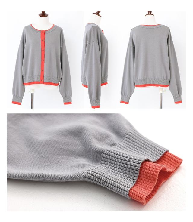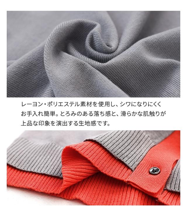 <冬新作>『配色レイヤードカーデ』【メール便不可】【20】[カーディガン レディース トップス ニット 長袖カーディガン クルーネック 配色 レイヤード風 重ね着風 春 秋 冬 オシャレウォーカー]