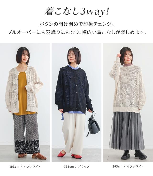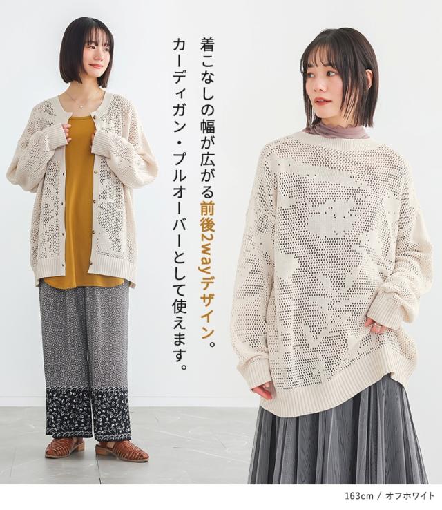 長袖ニット レディース トップス カーディガン プルオーバー 透かし編みニット 前後2wayデザイン 春 秋 オシャレウォーカー 【TP】 前開き ニット セーター ローゲージ ざっくりニット 透かし編み 羽織り ライトアウター アウター ニットカーディガン クルーネック 長袖 ミディ丈 ミドル丈 ドロップショルダー 2way 無地 シースルー シアー 透け感 レイヤード 重ね着 おうちで洗える カジュアル シンプル ナチュラル モード キレカジ 可愛い系 大人女子 大人可愛い お洒落可愛い 大人カジュアル 上品 きれいめ ベーシック ニュアンス ラフ Sサイズ Mサイズ Lサイズ LLサイズ 3Lサイズ XLサイズ フリーサイズ ぽっちゃり 体型カバー 大きいサイズ プラスサイズ 10代 20代 30代 40代 50代 60代 低身長 高身長 女子会 オフィス 通勤 通学 お買い物 お出掛け 旅行 おしゃれ お洒落 トレンド 流行 osharewalker 白 オフホワイト ブラック 黒[ID]11tp00v[透かし編み2wayニット]