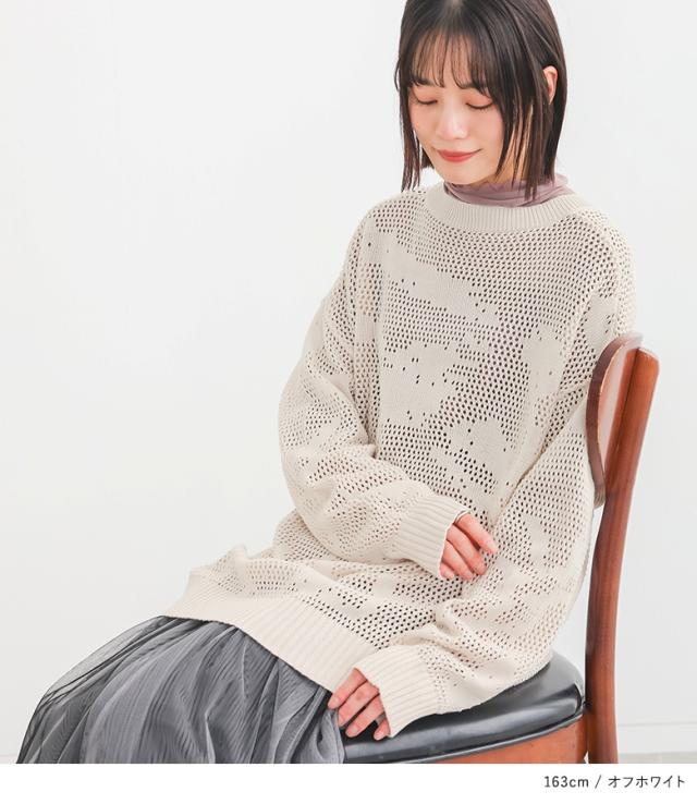 1,000円オフ4日0時迄 <冬新作>『透かし編み2wayニット』【メール便不可】【30】[長袖ニット レディース トップス カーディガン プルオーバー 透かし編みニット 前後2wayデザイン 春 秋 オシャレウォーカー]