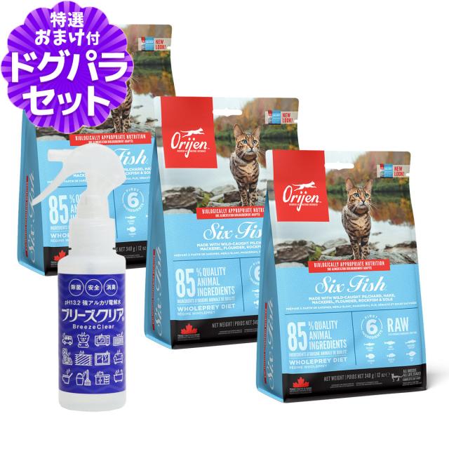 【沖縄以外送料無料】オリジン シックスフィッシュ キャット 340g ×3個+ph13.2強アルカリ電解水100ml キャットフード 猫 魚