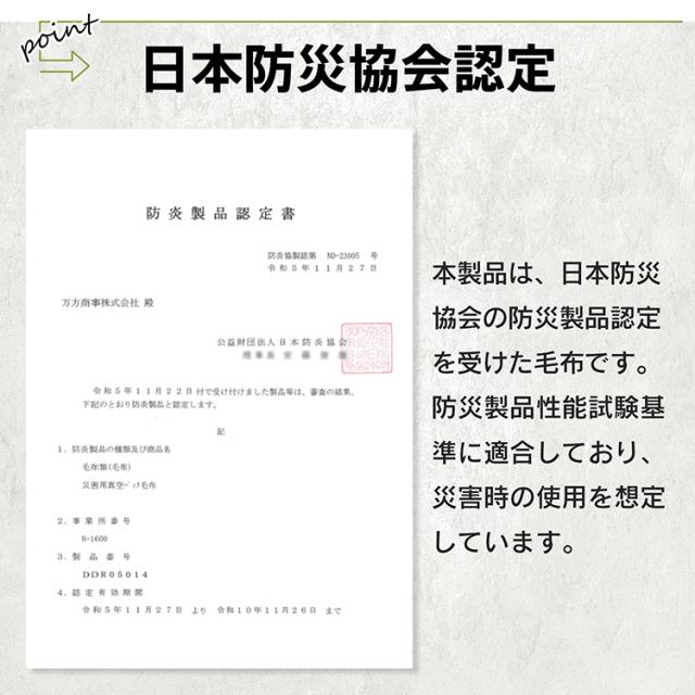 防災毛布 防災ブランケット 真空パック 非常用 備蓄用 災害対策 難燃素材 洗濯可能 日本防災協会認定 防災用品 災害備蓄 長期保管 省スペース 避難所 車内備蓄 オフィス備蓄 自治体備蓄 大判サイズ bs011