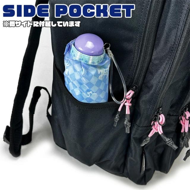 両サイドのオープンポケットは500mlPETや折り畳み傘の収納に便利。