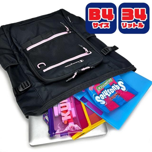 【商品レビューで+5%】チャンピオン リュック メンズ レディース リュックサック Champion フレズノ スクエア ボックス型 大容量 デイパック バックパック 34L 男女兼用 ジュニア 学生 大学生 高校生 中学生 A4 B4 PC パソコン 通勤 通学 旅行 部活 軽量 人気 65463