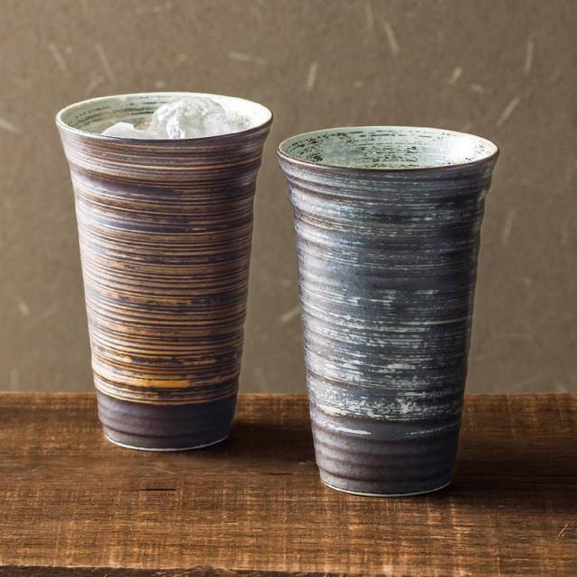 西日本陶器 有田焼 金銀刷毛 反型ペアビアカップ(大)