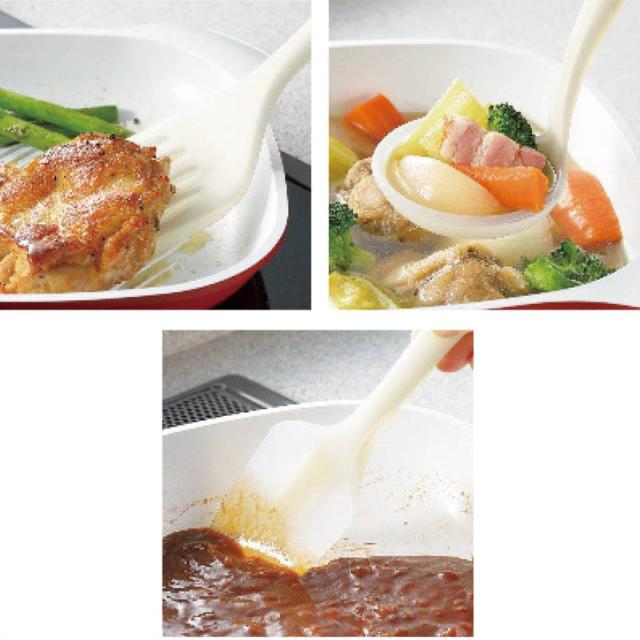 毎日の料理の欠かせないキッチンツールのセット。使用頻度の高いレードル、ターナー、スパチュラの便利なセットです。