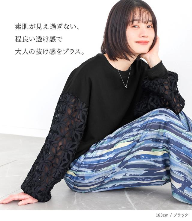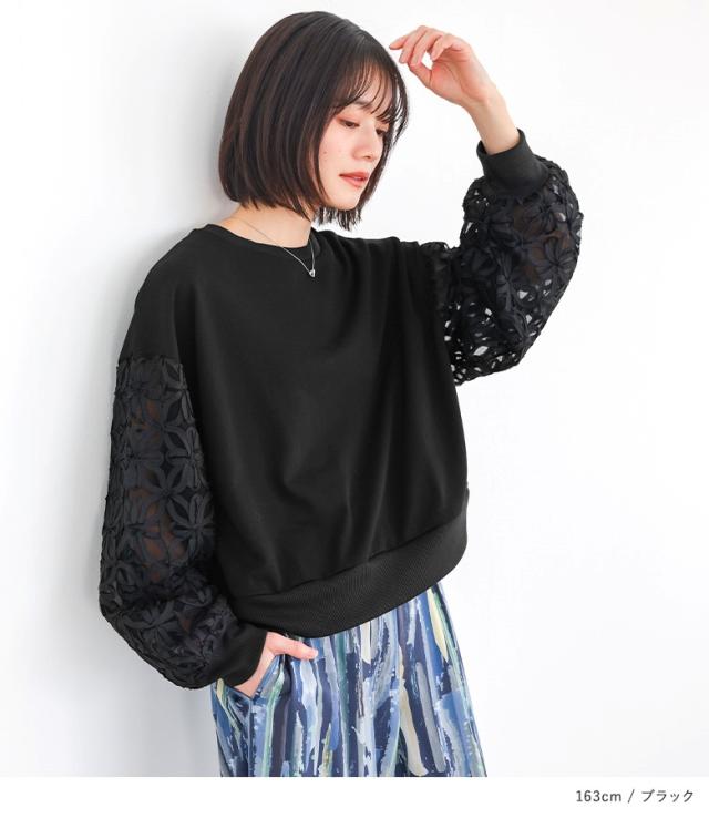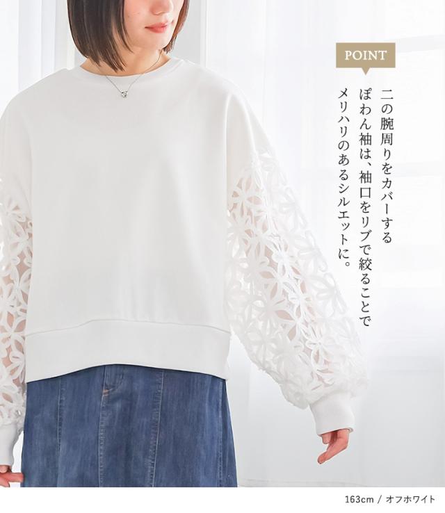 プルオーバー レディース トップス 長袖 スウェット 透け感 シアー チュール 花柄 ぽわん袖 異素材 春 秋 オシャレウォーカー 【TP】 Tシャツ カットソー ロンT スエット クルーネック パフスリーブ バルーンスリーブ バルーン袖 ボリューム袖 袖コンシャス ミディ丈 ミドル丈 ドロップショルダー 花 フラワー 配色 無地 異素材MIX 裏毛 シースルー 肌見せ おうちで洗える カジュアル レトロ クラシカル シンプル ナチュラル モード キレカジ フェミニン ガーリー 可愛い系 大人女子 大人可愛い お洒落可愛い 大人カジュアル オフィスカジュアル 上品 きれいめ ベーシック ニュアンス ラフ Sサイズ Mサイズ 10代 20代 30代 40代 50代 60代 低身長 高身長 女子会 オフィス 通勤 通学 お買い物 お出掛け 旅行 おしゃれ お洒落 トレンド 流行 osharewalker 白 オフホワイト ブラック 黒[ID]11tp01d[袖花チュール裏毛プルオーバー]