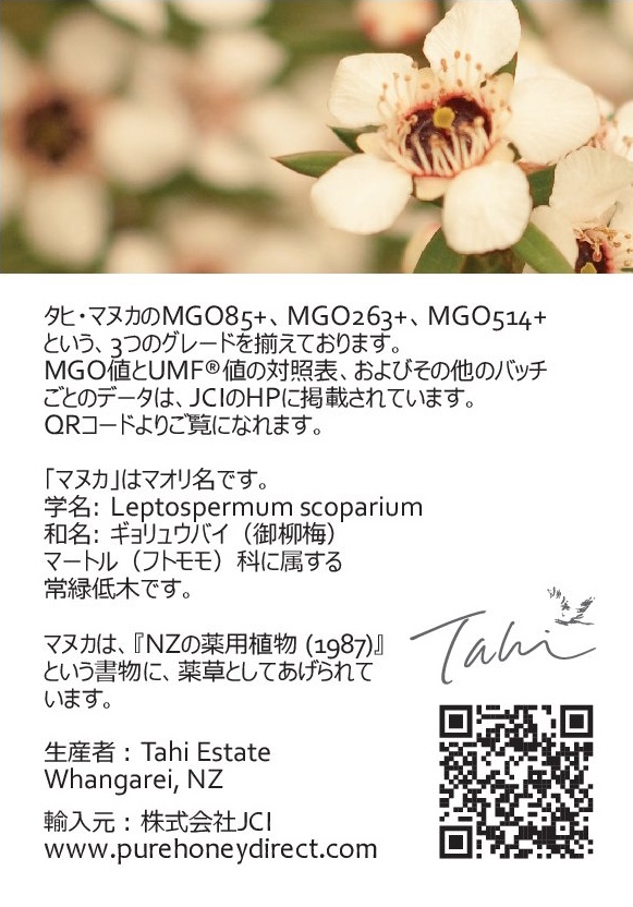 ◆だから蜂に砂糖水を与えたり、蜂を受粉に使ったりしません。蜜は蜂の取り分が優先です 。こうしてできたはちみつが苦みを感じさせない、シルクのような滑らかさ、タヒ マヌカ なのです。ヨーグルトやシリアル、チーズとの相性抜群。おいしさと抗菌力を日々の健康に お役立てください。