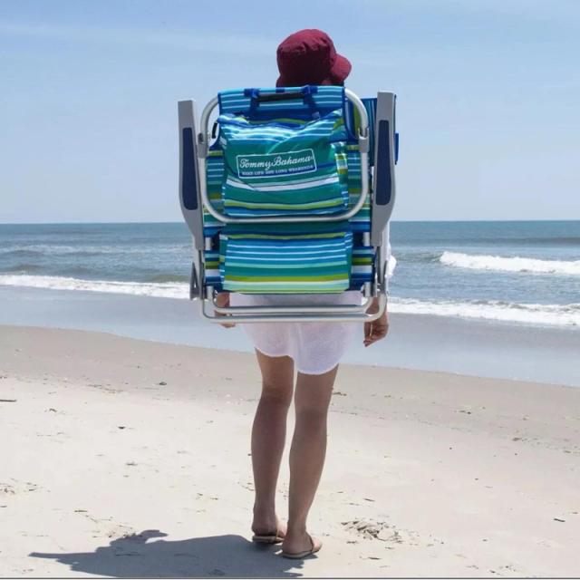 トミーバハマ ビーチチェア ブルーストライプ 5段階フルリクライニング 背負える 耐荷重136kg【新品】 Tommy Bahama Beach Chair マリンレジャー キャンプ用 グランピング用 寝具 アウトドア用品 コンバータコット 椅子 %off