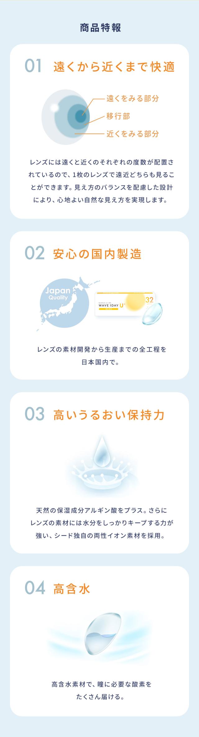 【2箱】WAVEワンデー ユー プラス 遠近両用 32枚入り クリア コンタクトレンズ 1日使い捨て 1day