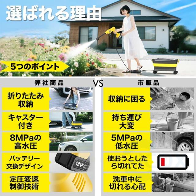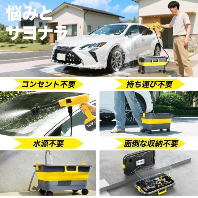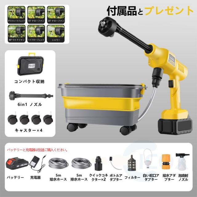 高圧洗浄機 20L折り畳みバケツ コードレス 充電式高圧洗浄機 6in1ノズル 高性能 強力 最大吐出圧力8MPa 小型 軽量 段階調整 持ち運び便利 大掃除 洗車機 家庭用