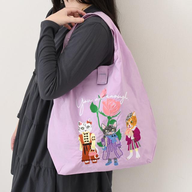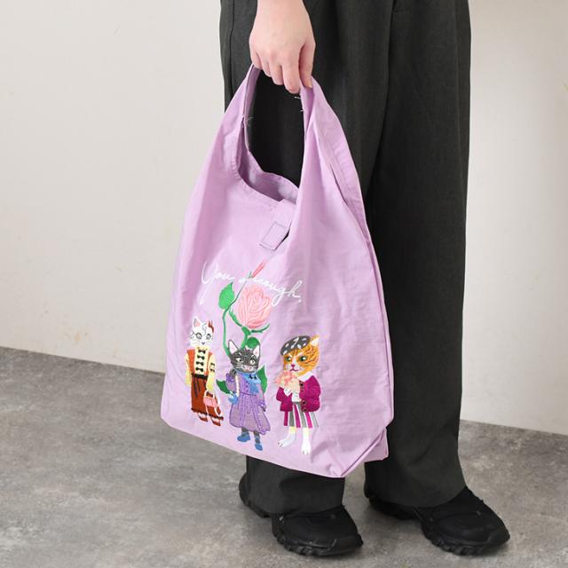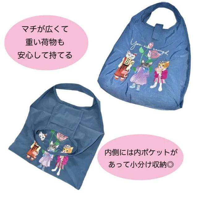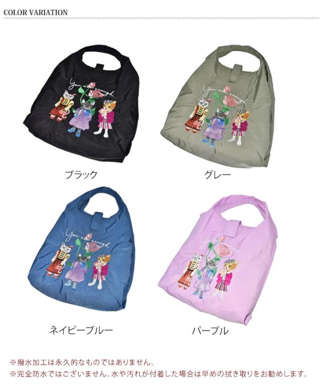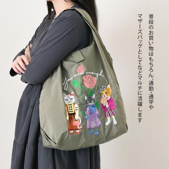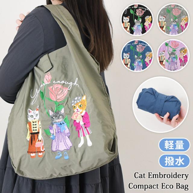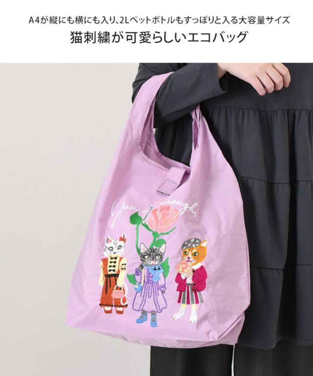 新作 猫刺繍 コンパクト 軽量 撥水 エコバッグ 折りたたみ 大容量 マチ広 マチ付き 大きめ レジ袋 レディース マイバッグ 買い物バッグ ネコ ナイロン 肩掛け 手持ち 手提げ 軽い おしゃれ かわいい 普段使い