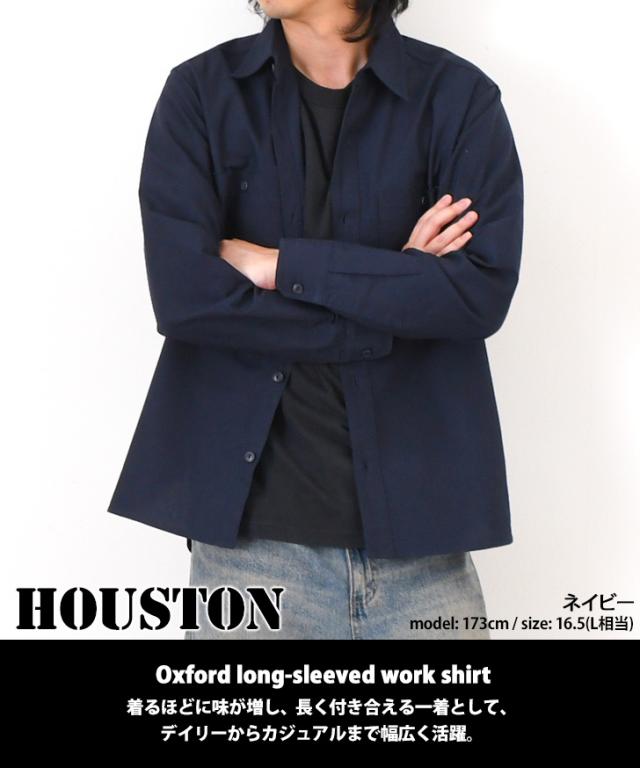 新作 HOUSTON ヒューストン オックスフォード 長袖 ワークシャツ 41133 オックスフォードシャツ メンズ 長袖 カジュアルシャツ 長袖シャツ 大きいサイズ ミリタリー 無地 カジュアル 綿100% ビジネス