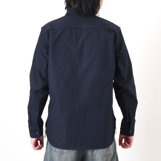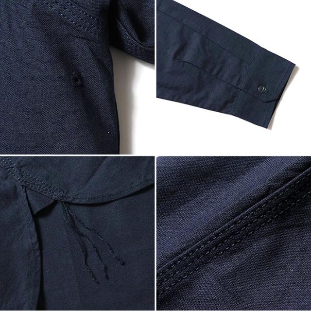 巻き3本針縫製やネコ目ボタンを採用し、ワークウェア由来のヴィンテージ感あふれる仕上がり。
