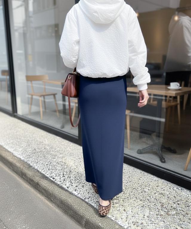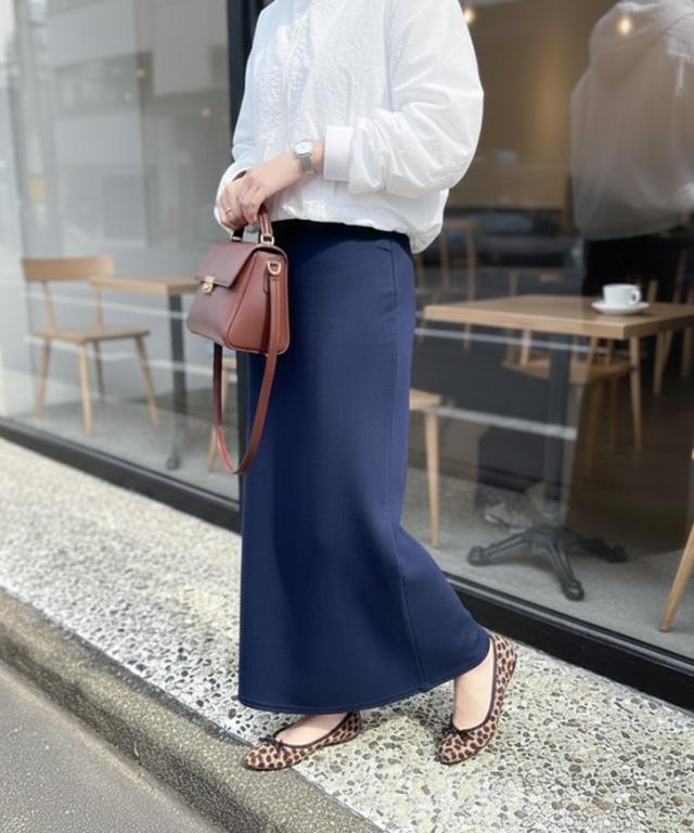 洗練された印象のライトスウェットロングスカート