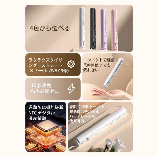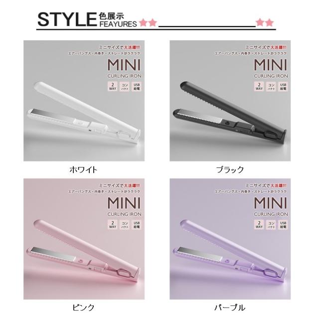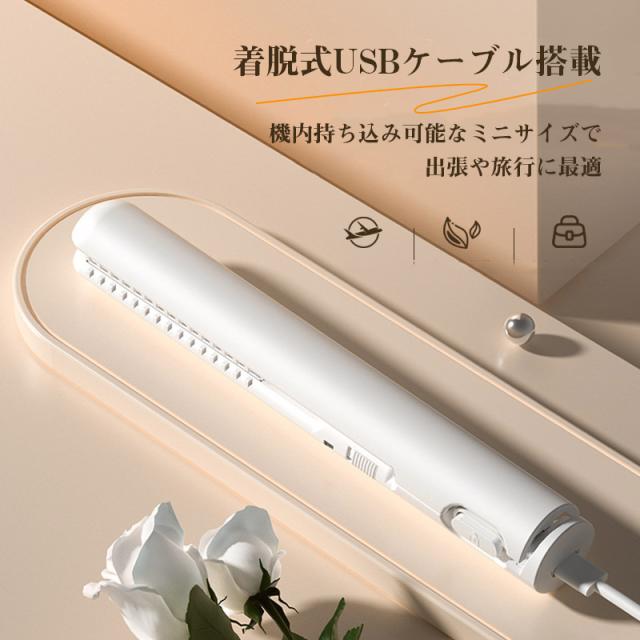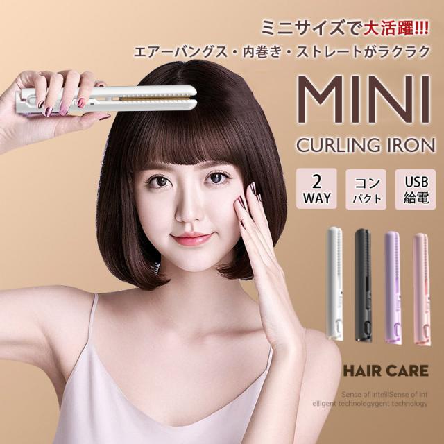【キーワード】ヘアアイロン ヘアーアイロン ストレート カール ミニ コンパクト 充電式 携帯用 ミニヘアアイロン 軽量 前髪 旅行 2way USB 急速加熱