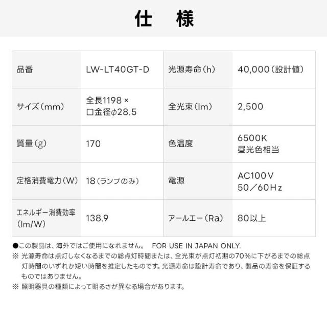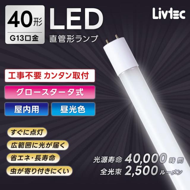 ユアサプライムス Livtec LED蛍光灯 40W形 直管 グロー式 工事不要 LED直管 昼光色 6500K 18W 2500lm LW-LT40GT-D YUASA PRIMUS リブテック