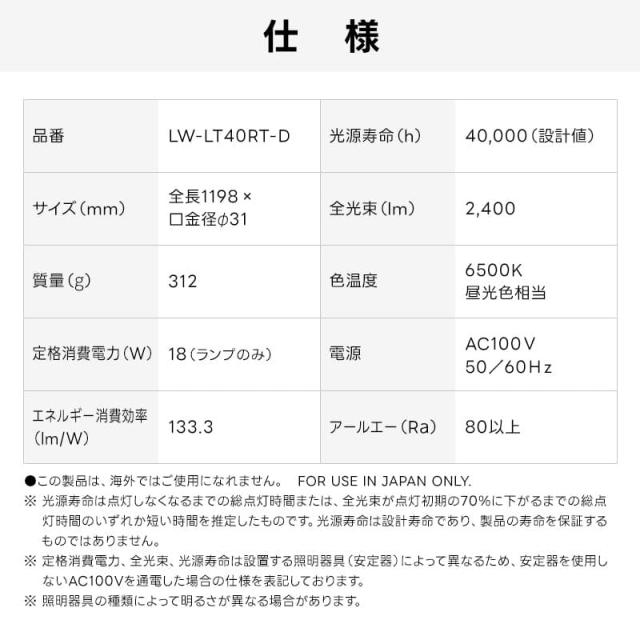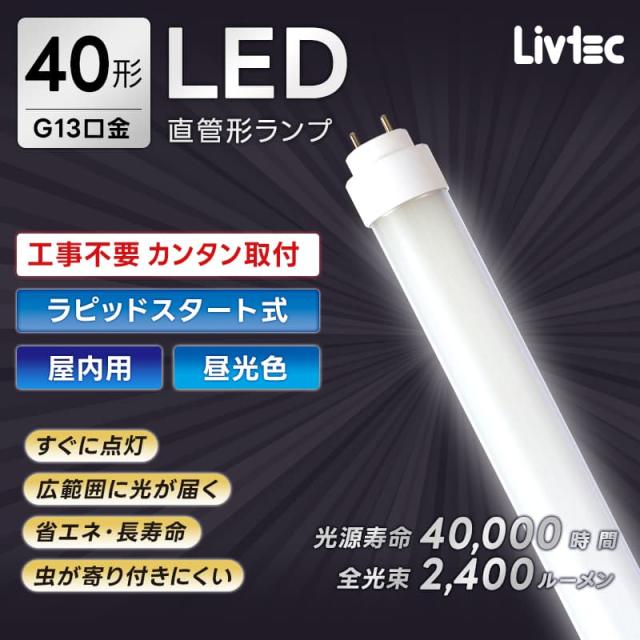 ユアサプライムス Livtec LED蛍光灯 40W形 直管 ラピッド式 工事不要 LED直管 昼光色 6500K 18W 2400lm LW-LT40RT-D ラピッドスタート式 YUASA PRIMUS リブテック