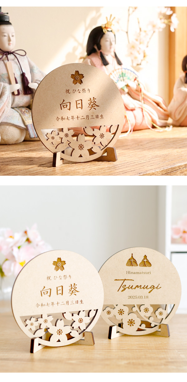 名前札 ひな祭り 雛人形 木製 初節句 節句 桃の節句 丸 桜 女の子 命名札 命名書 出産祝い おしゃれ ナチュラル お七夜