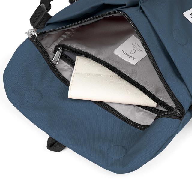 かぶせ部分のファスナーを開くとメイン収納にアクセスできます。内側にもファスナーポケットがあり、大事な物も入れておけます。
