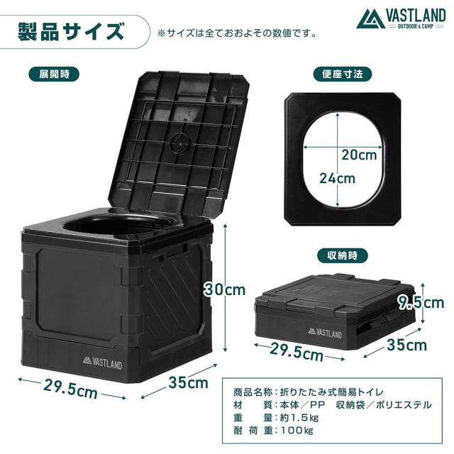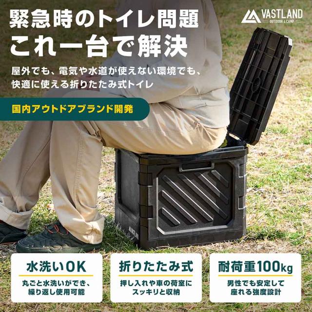 VASTLAND 簡易トイレ 折りたたみ式 携帯トイレ 非常用トイレ 災害用 防災 トイレ ポータブルトイレ 緊急トイレ 車中泊 水洗い可能