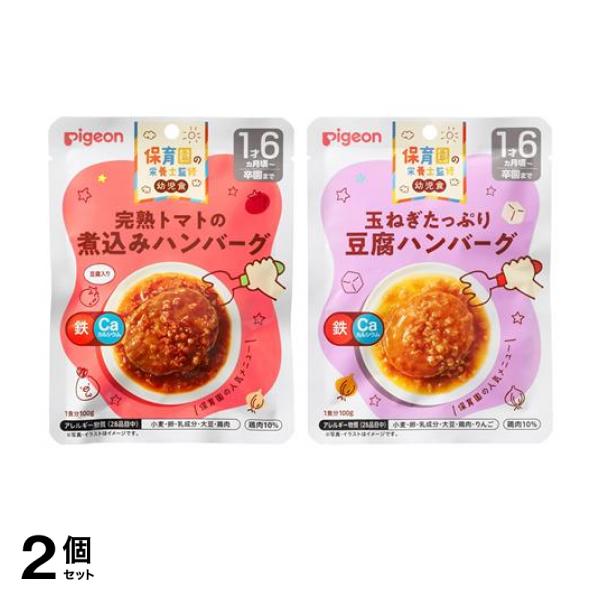 2個セット クーポン有 ピジョン(Pigeon) 保育園の栄養士監修 幼児食レトルト 完熟トマトの煮込みハンバーグ &玉ねぎたっぷり豆腐ハンバーグ 各100g