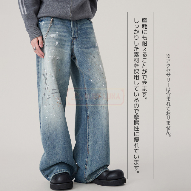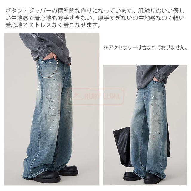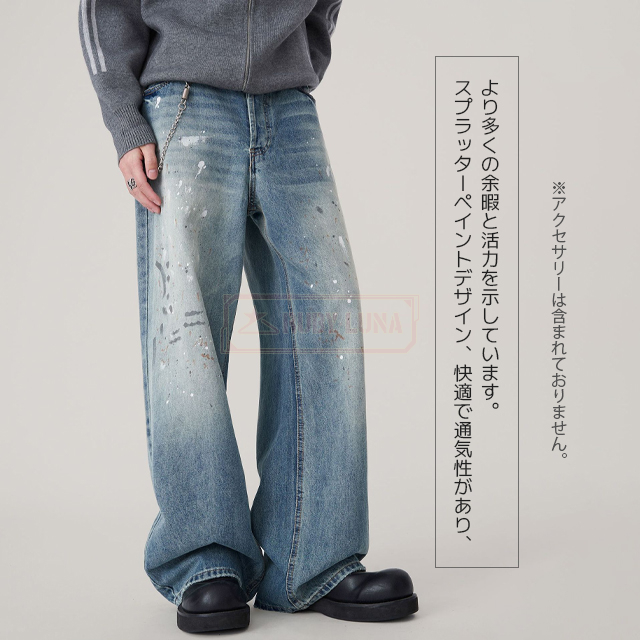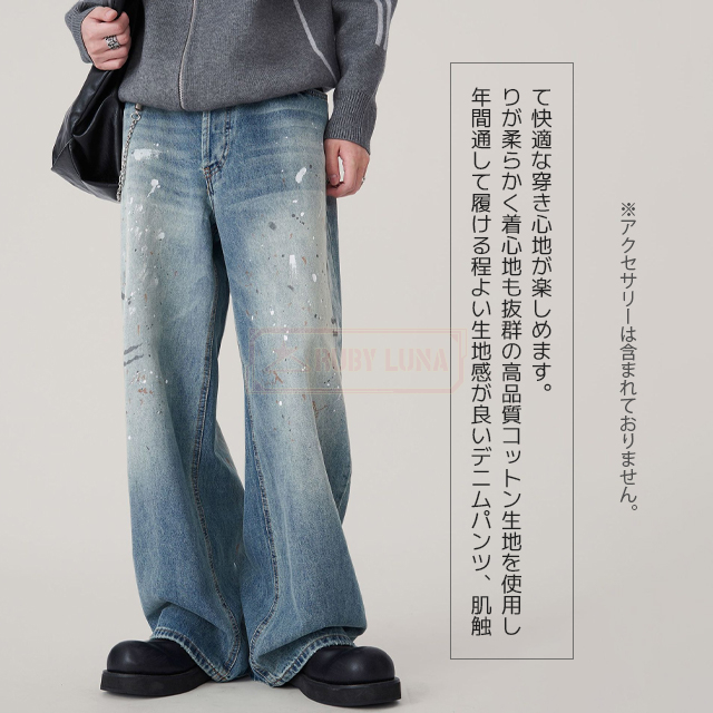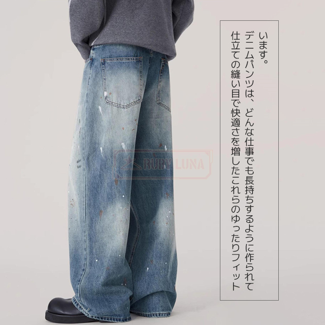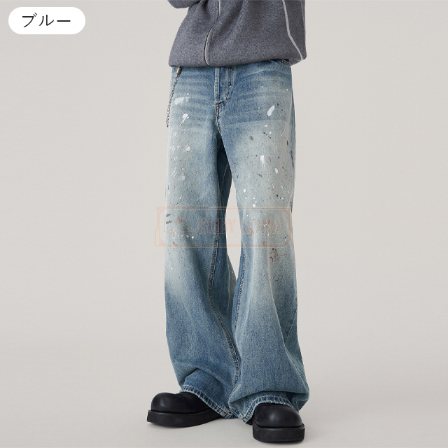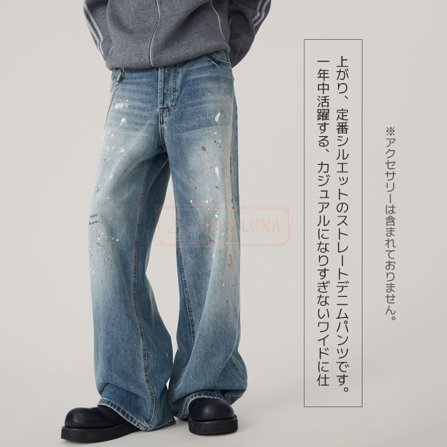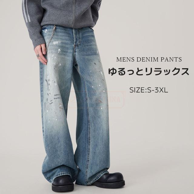 最安挑戦 冬新作 送料無料 新作 デニムパンツ スプラッシュ インク グラフィティ ジーンズ かっこいい 大きいサイズ ストリート カジュアル リラックス ウォッシュ ダメージ パンツ ストレート Gパン ワイドパンツ ズボン ボトムス