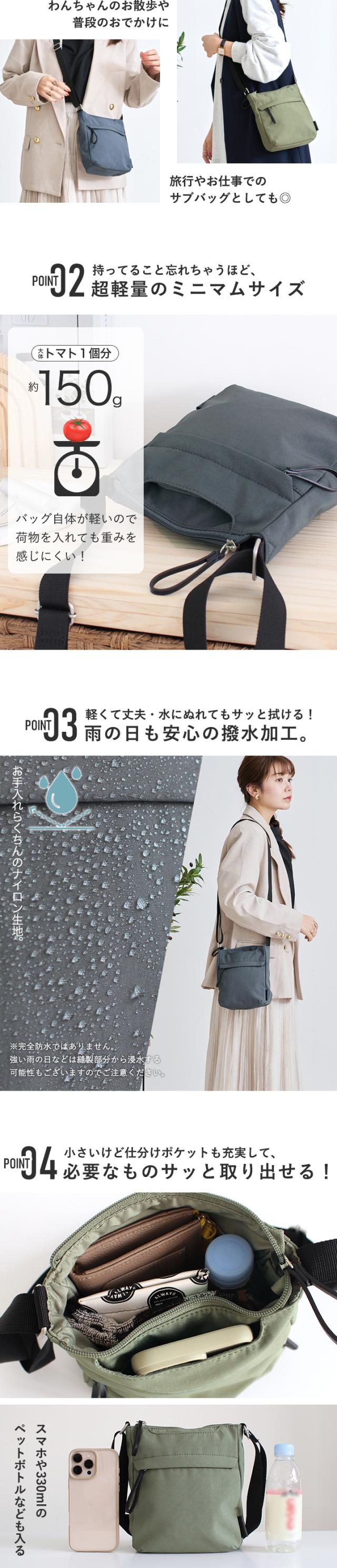 素敵に快適!ナチュらくバッグ シリーズ。 あえて金具感を極力なくして、 ナチュラルな仕上がりを意識しました。 ナチュラルで、“らく”を意識したアイテム。 ペットボトルと長財布が収納可能なのが嬉しい◎ 雨の日でもお手入れ”らく”な撥水加工。 |