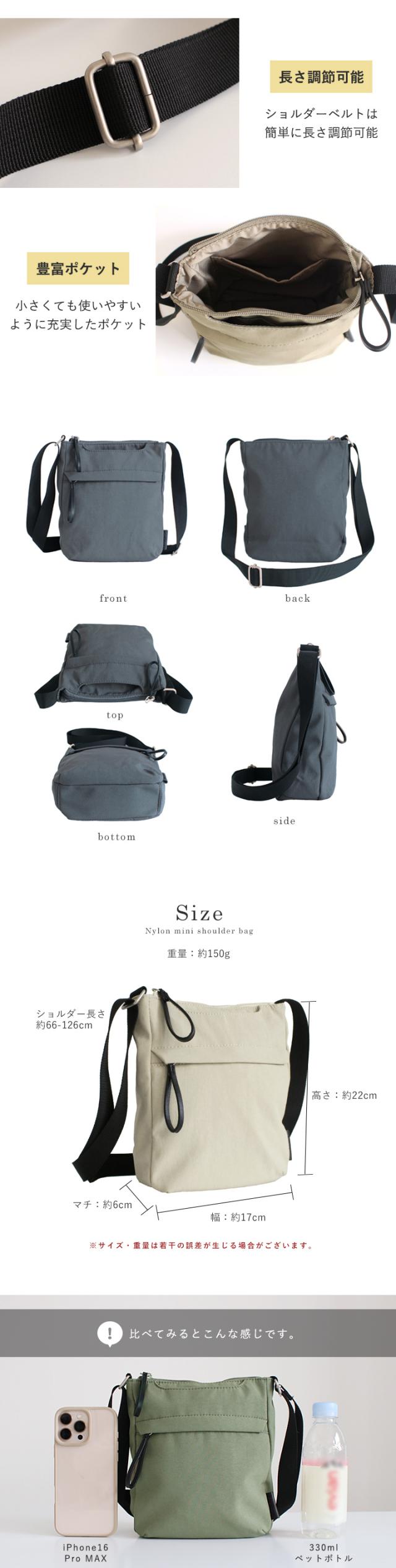 【サイズ(cm)】 幅:約17、高さ:約22、マチ:約6 ショルダー長さ:約66-126 【重量(g)】 約150 【仕様】 メイン開閉:ファスナー 外側:オープンポケット×1、ファスナーポケット×1 内側:オープンポケット×1 【素材】 ナイロン ※サイズは当店平置き外寸サイズです。タグの表記とは異なる場合があります。 製品による個体差がある場合がございますので予めご了承下さい。 |
