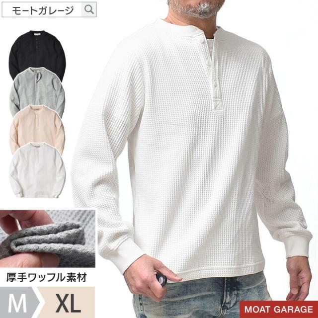 サーマル ワッフル ヘンリーネック 長袖 メンズ アメカジ | M~XL 全4色 厚手 ロンT 無地 シンプル 長袖Tシャツ 春 秋冬 ブランド 大きいサイズ 暖かい 20代 30代 40代 50代 60代 メンズファッション カジュアル オシャレ かっこいい モート ガレージ 大人 服 人気 オススメ