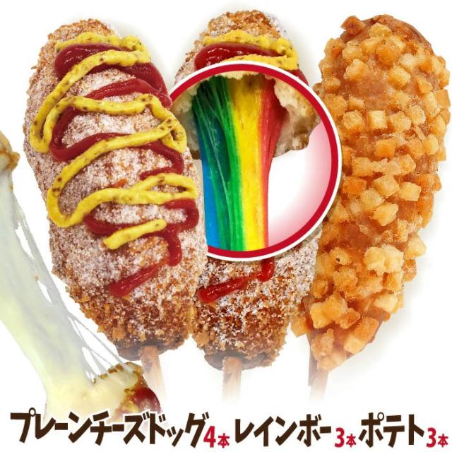 チーズドッグ&ポテトハットグ&レインボーハットグ Kセット 冷凍(チーズドック 4本+ポテトチーズドッグ3本+レインボーチーズドッグ3本) 送料無料 韓国グルメ をご家庭で!