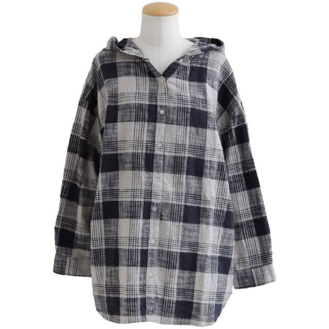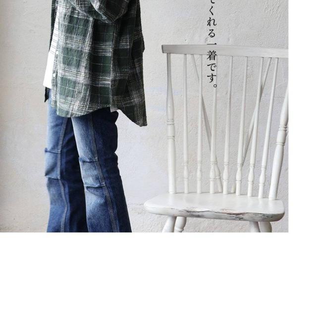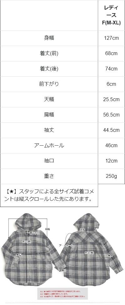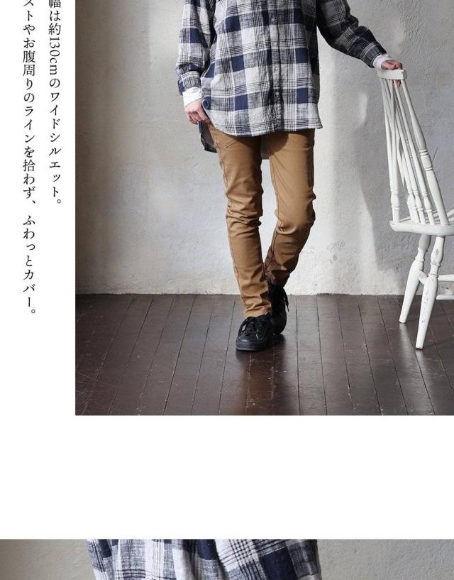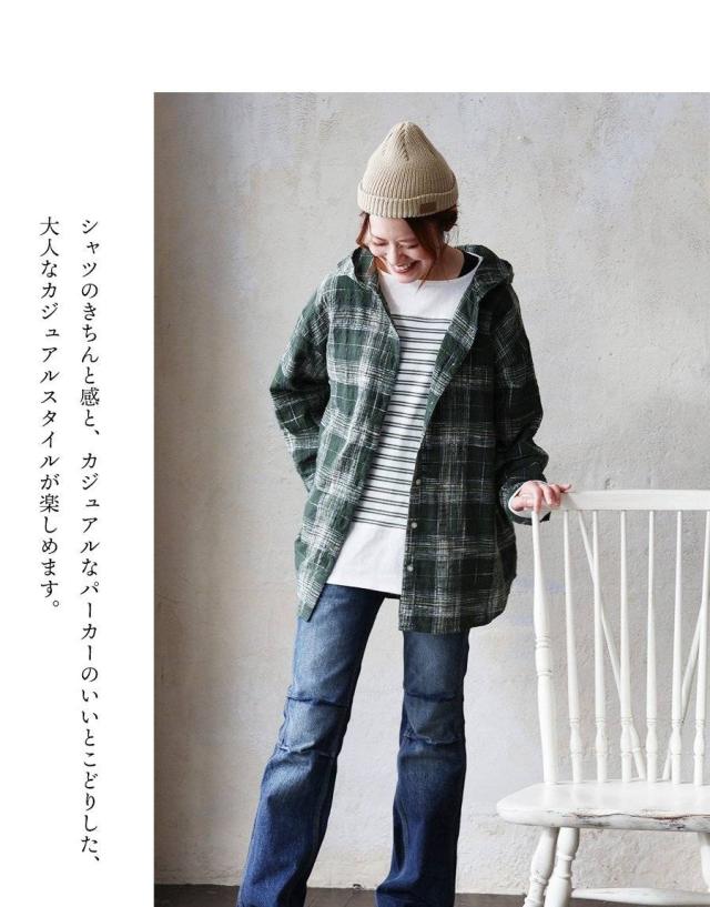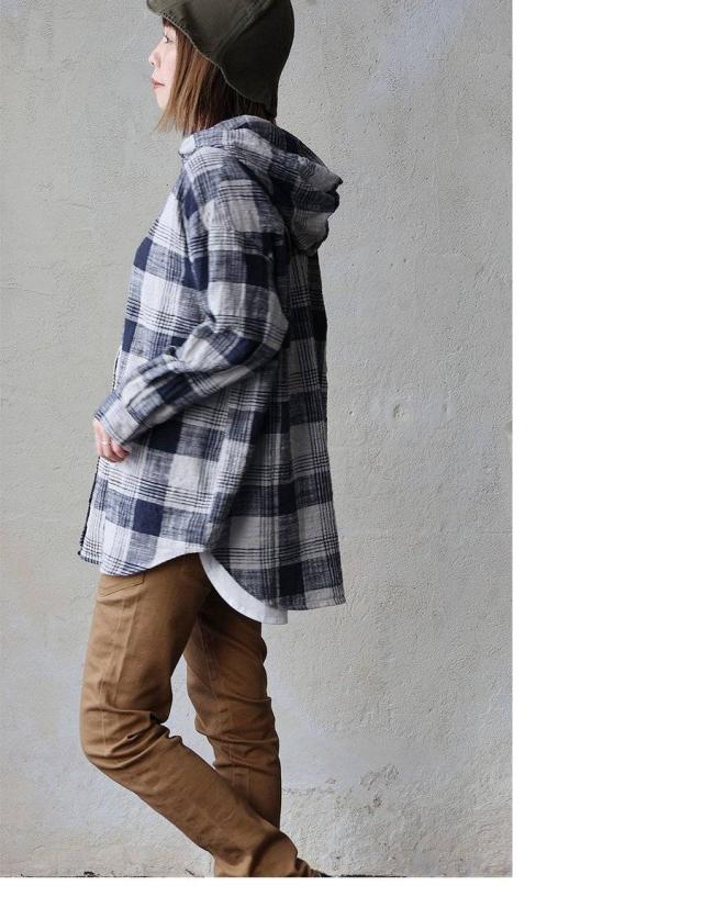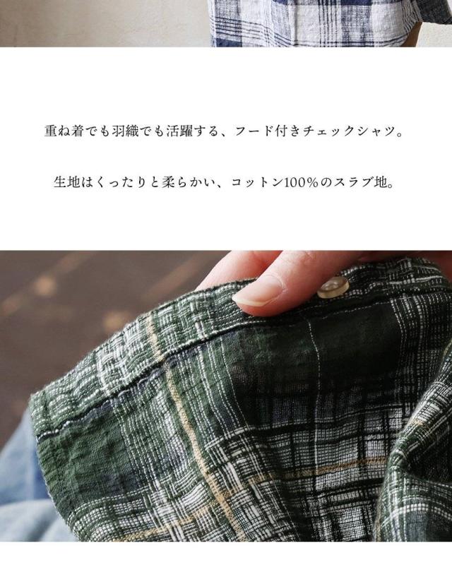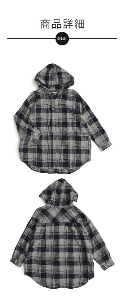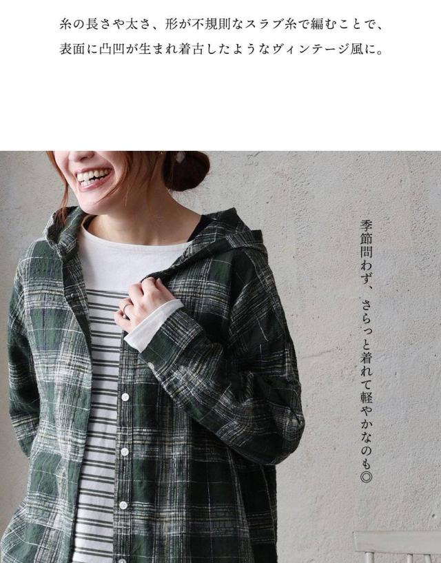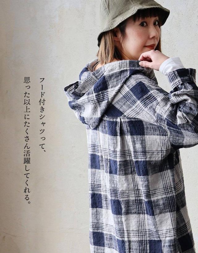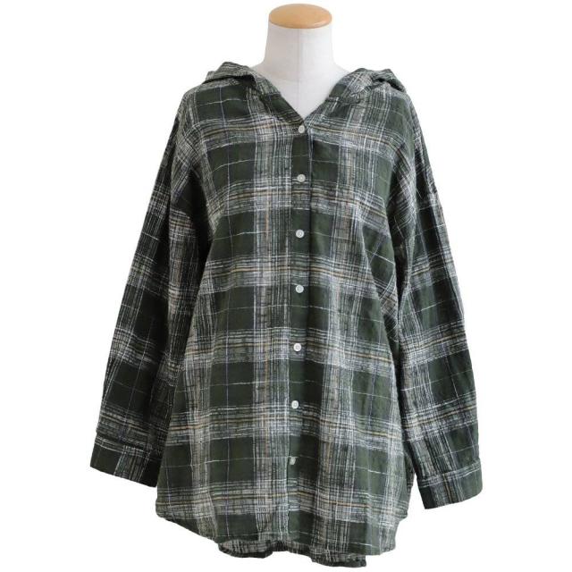 シャツ スキッパーシャツ 長袖 レディース 着痩せ ワイド お尻隠れる フード付き チェック柄 綿100% コットンスラブ 薄手 軽い 重ね着 大きいサイズ ゆったり 古着風 大人 カジュアル パティ