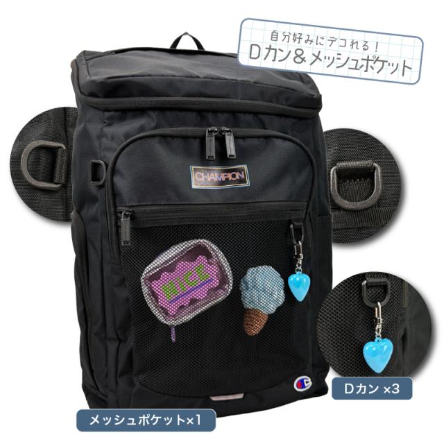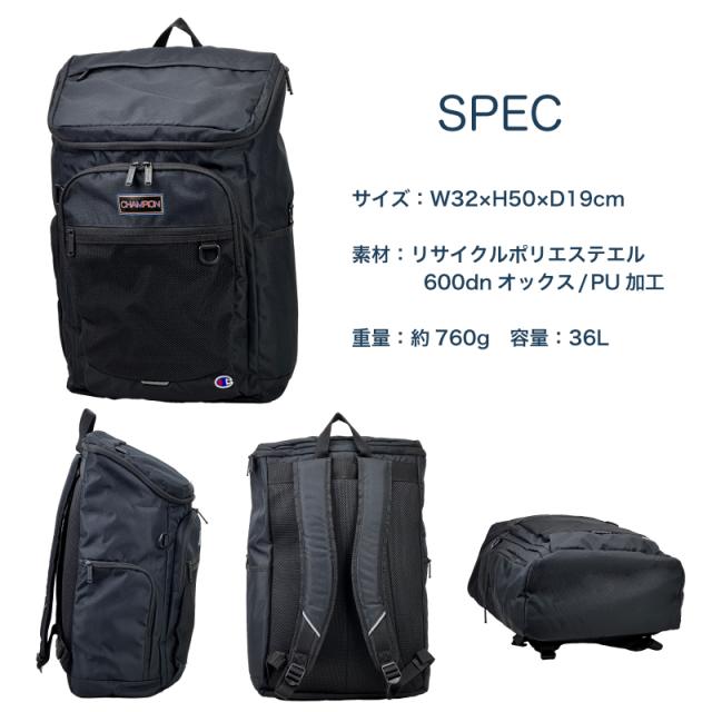 【商品レビューで+5%】チャンピオン Champion リュック メンズ レディース スクエア ボックス型 リュックサック 軽量 大容量 男女兼用 デイパック バックパック スクールバッグ 36L 学生 大学生 高校生 中学生 A4 B4 通学 通勤 部活 ブランド 人気 カバン 黒 68892