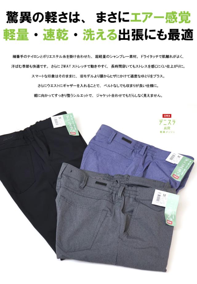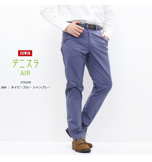 2026年春夏 EDWIN エドウィン デニスラAIR EDB111 2WAYシャンブレー スリムテーパード スラックス チノパンツ ストレッチ トラウザーパンツ メンズ 仕事着 ビジネスカジュアル 送料無料 デニスラエアー