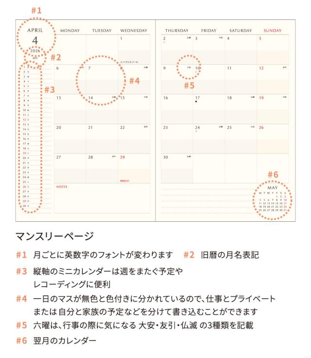 大人女子好みのデザインが充実している『MATOKA』の 2026年4月始まりマンスリーダイアリー。
