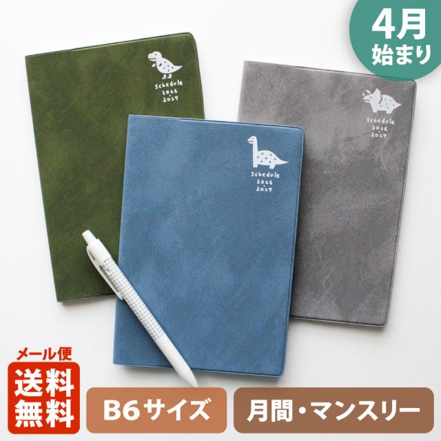 手帳 2026 マトカ 2026年4月始まり手帳 ダイアリー スケジュール帳|B6サイズ マンスリー・スタンダード(月間ブロック)『ピエニ|PIENI』恐竜 ティラノサウルス トリケラトプス ダイナソー ブラキオサウルス