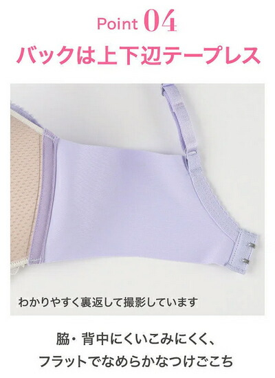 バックは上下辺テープレスで、脇・背中にくいこみにくく、フラットでなめらかなつけごこち