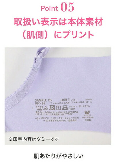 ・取扱い表示は本体素材にプリントしているから、肌あたりがやさしい