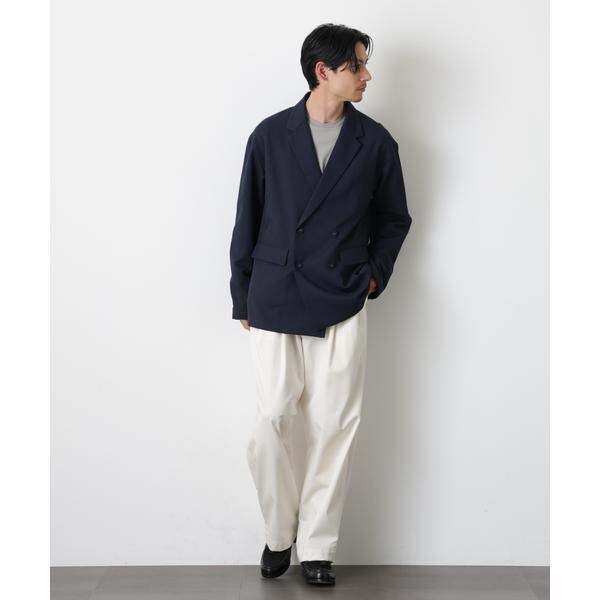 程よいリラックスフィットで仕上げたダブルジャケット。柔らかく落ち感のある素材を使用した、カーディガン感覚で羽織れる一枚。インナー使いによってキレイめなスタイリングも、抜け感のあるスタイリングもマッチするアイテムです。