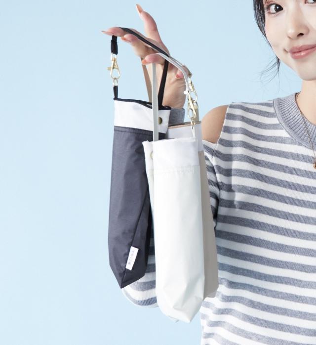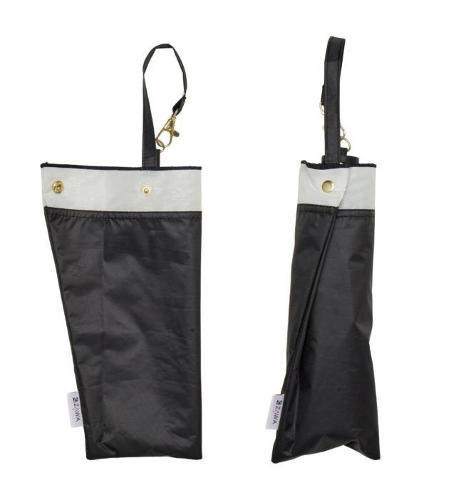 傘袋はボタンを外すことで口が広がるので、スムーズに収納できます。また、ナスカン付きのストラップはカバンの取っ手などに引っ掛けられるので持ち歩きにも便利!